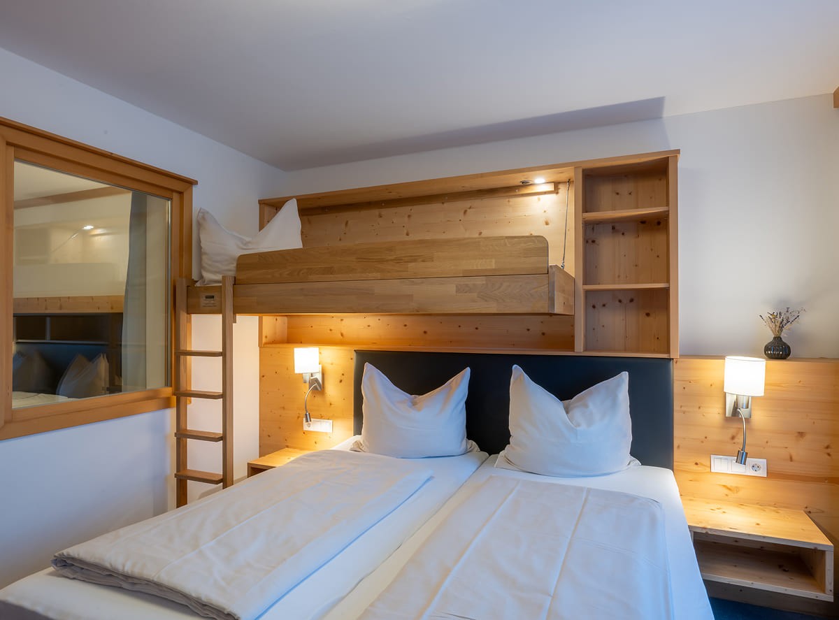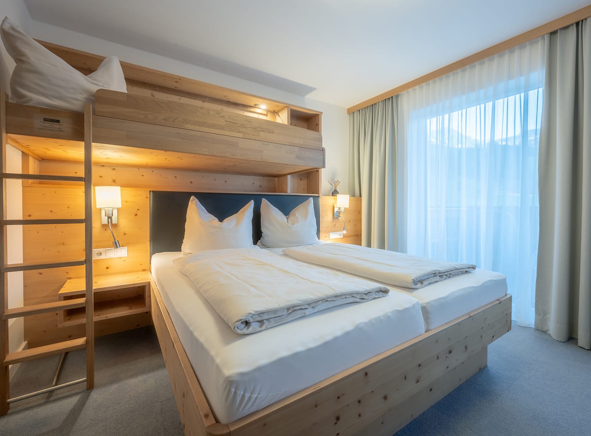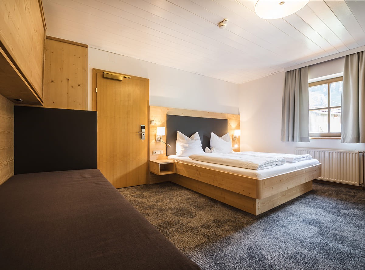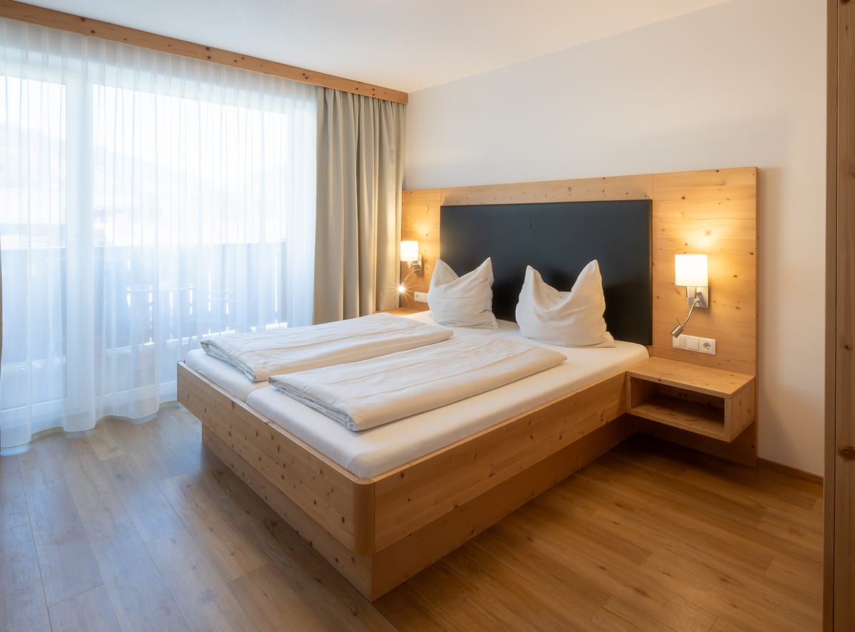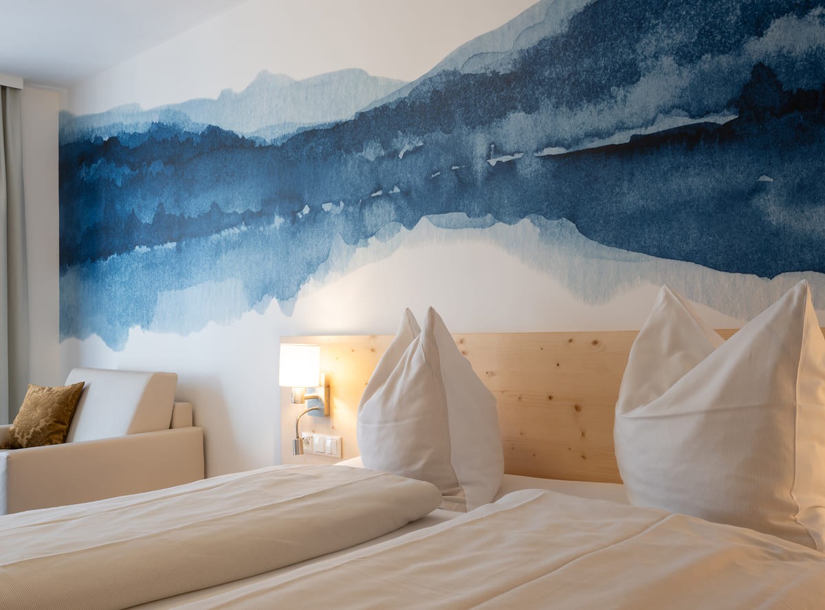 Our freshly renovated double rooms are ideal for couples or small families. If you desire a bit more space, we recommend our family rooms with two separate sleeping areas, some even with two bathrooms – perfect for a vacation with multiple children or friends. Warm colors, natural wood, and a comfortable furnishings create a cozy atmosphere where you will feel at home from the very first moment and recharge after an eventful day.