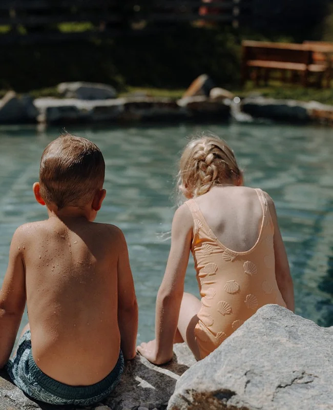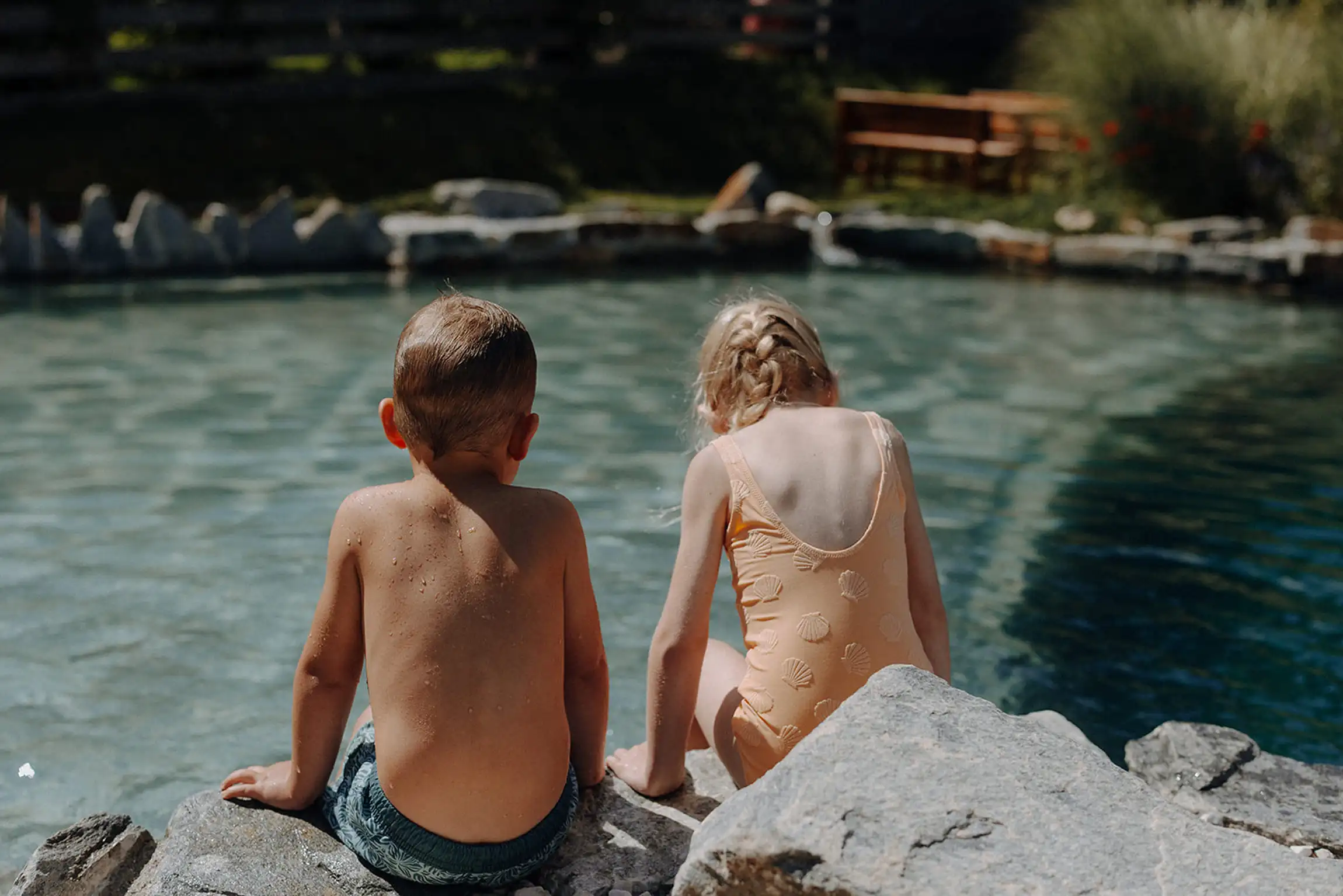 Natural swimming pond with cozy loungers – summer idyll at the family hotel Botenwirt
